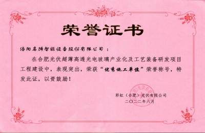 名特公司榮獲彩虹(合肥)光伏有限公司授予的“優(yōu)秀施工單位”榮譽(yù)稱號